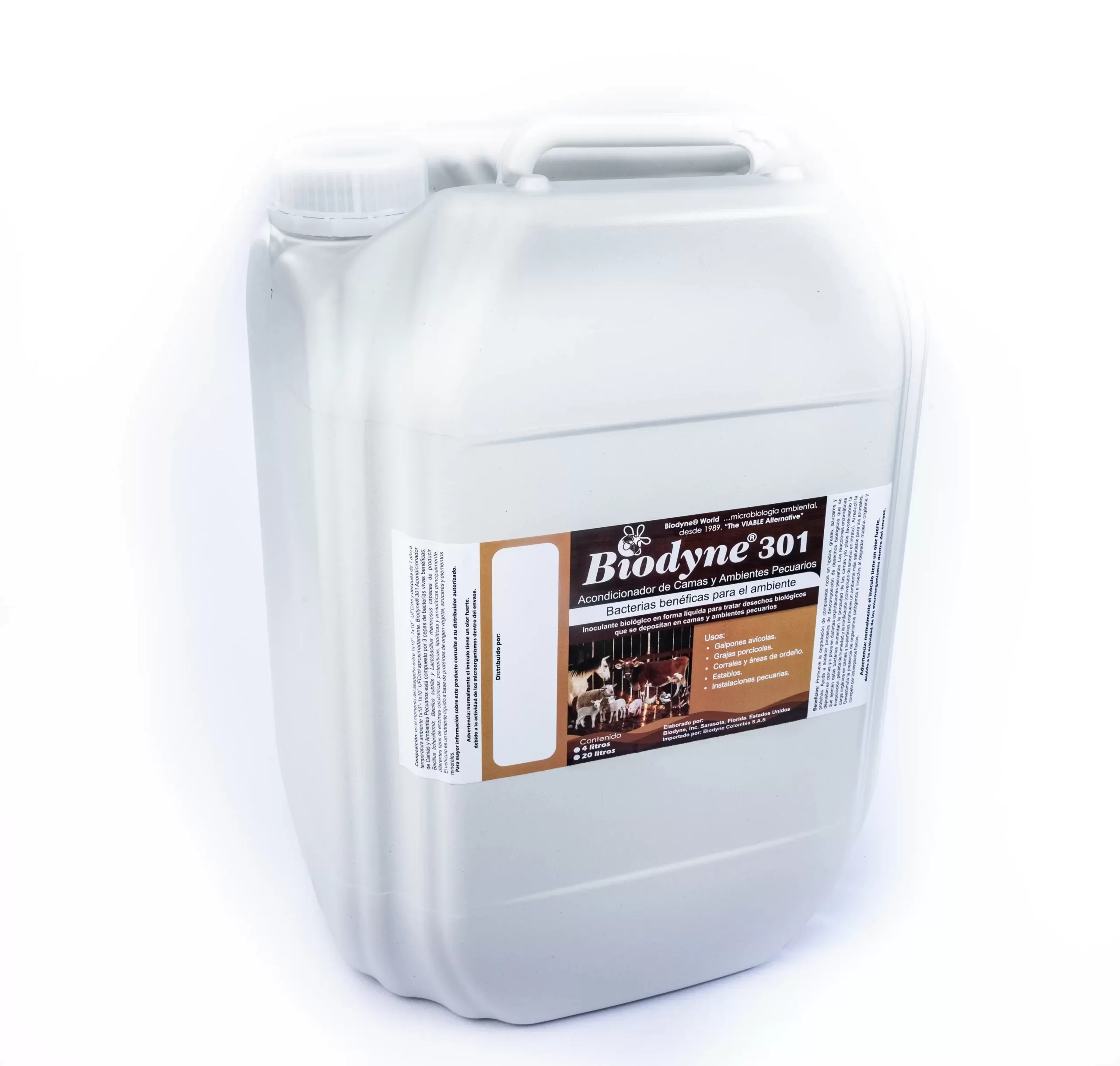 Biodyne® 301 Acondicionador de Camas y Ambientes Pecuarios es un producto desarrollado por Biodyne® World para tratar las camas, controlar olores, moscas y en general para mejorar ambientes en todo tipo de instalaciones pecuarias: galpones avícolas, granjas porcícolas, corrales ganaderos, salas de ordeño, pesebreras, perreras, etc.