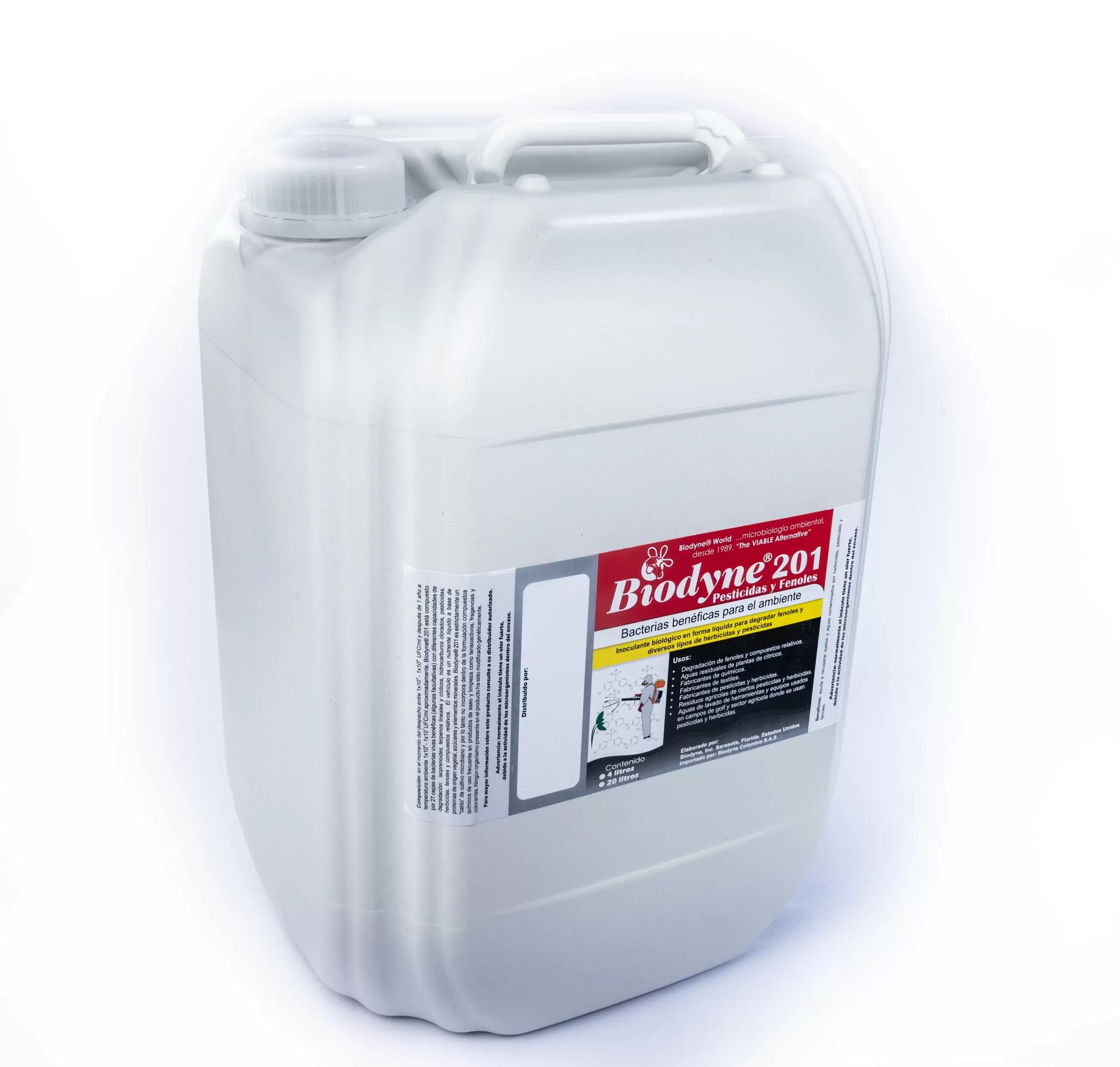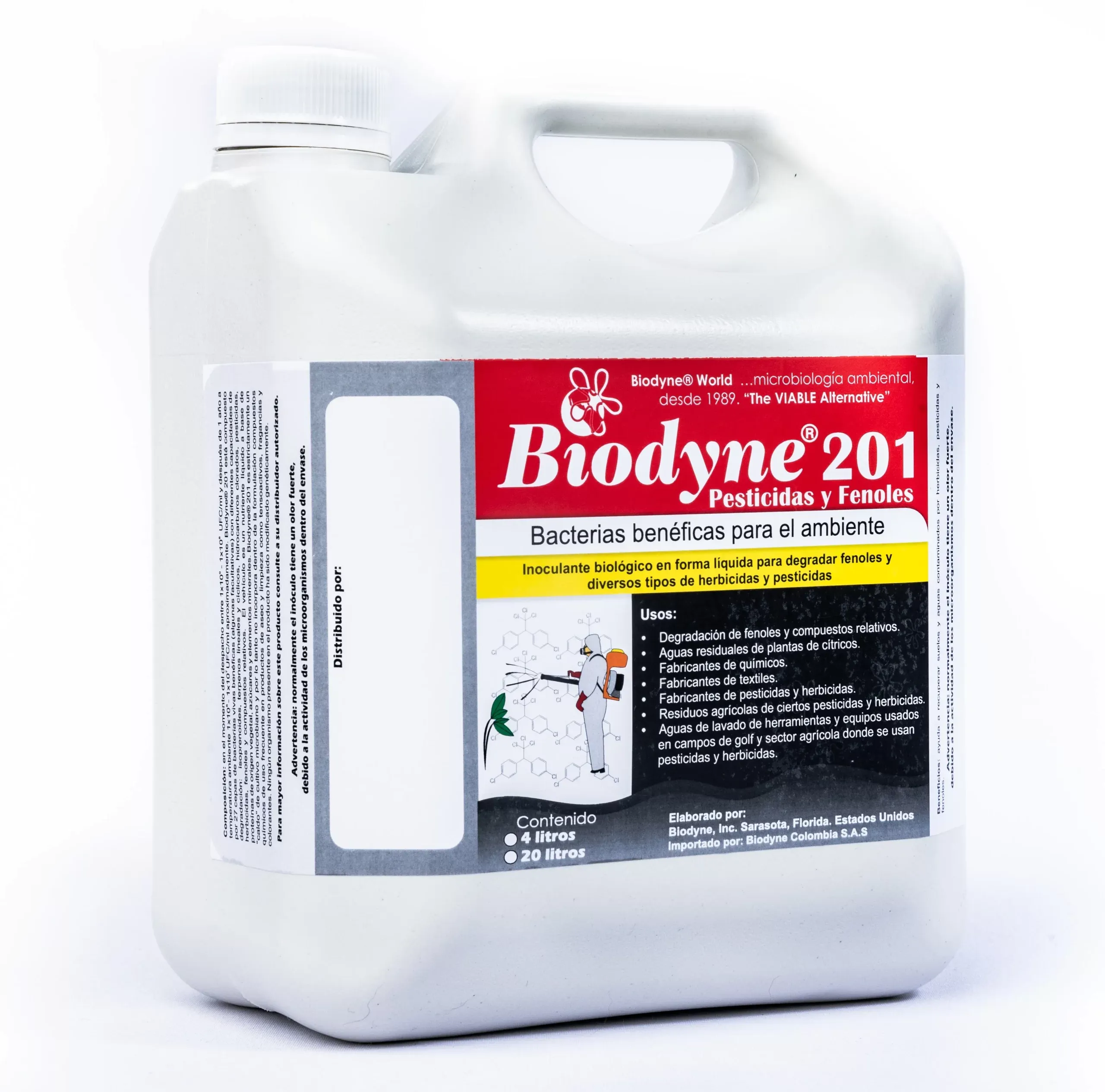 Biodyne® 201 es un consorcio microbiano desarrollado por Biodyne, Inc. en Sarasota, FL, USA a finales de la década de los 90 para tratar suelos y aguas contaminadas por residuos de herbicidas y pesticidas. El inóculo, cuando fue formulado por primera vez, estaba compuesto por 6 cepas de bacterias, pero con el paso de los años y gracias a un intenso programa de investigación y desarrollo, hoy en día cuenta con 27 cepas de bacterias capaces de producir enzimas específicas que pueden degradar muchas de las moléculas que componen estas peligrosas sustancias químicas.