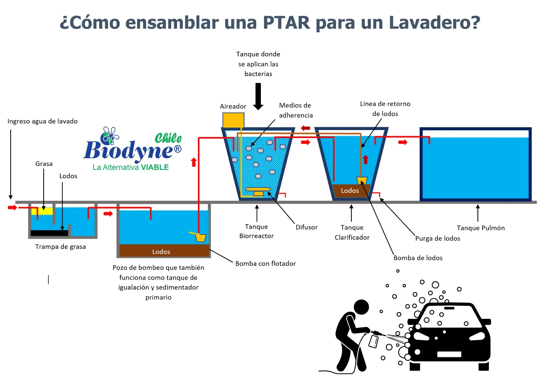 Existen varias tecnologías y tratamientos para recircular y reutilizar el agua en los lavaderos de vehículos. Estos sistemas están diseñados para reducir el consumo de agua potable y minimizar el impacto ambiental. La mayoría de estos sistemas son químicos, biológicos o mixtos.